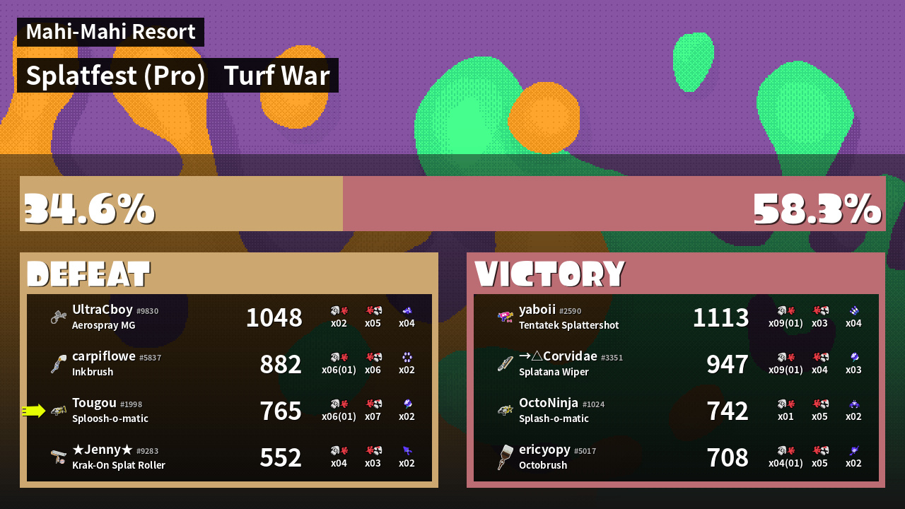 | Medals | #1 Overall Splatter #1 Enemy-Base Inker #1 Super Jump Spot | ||