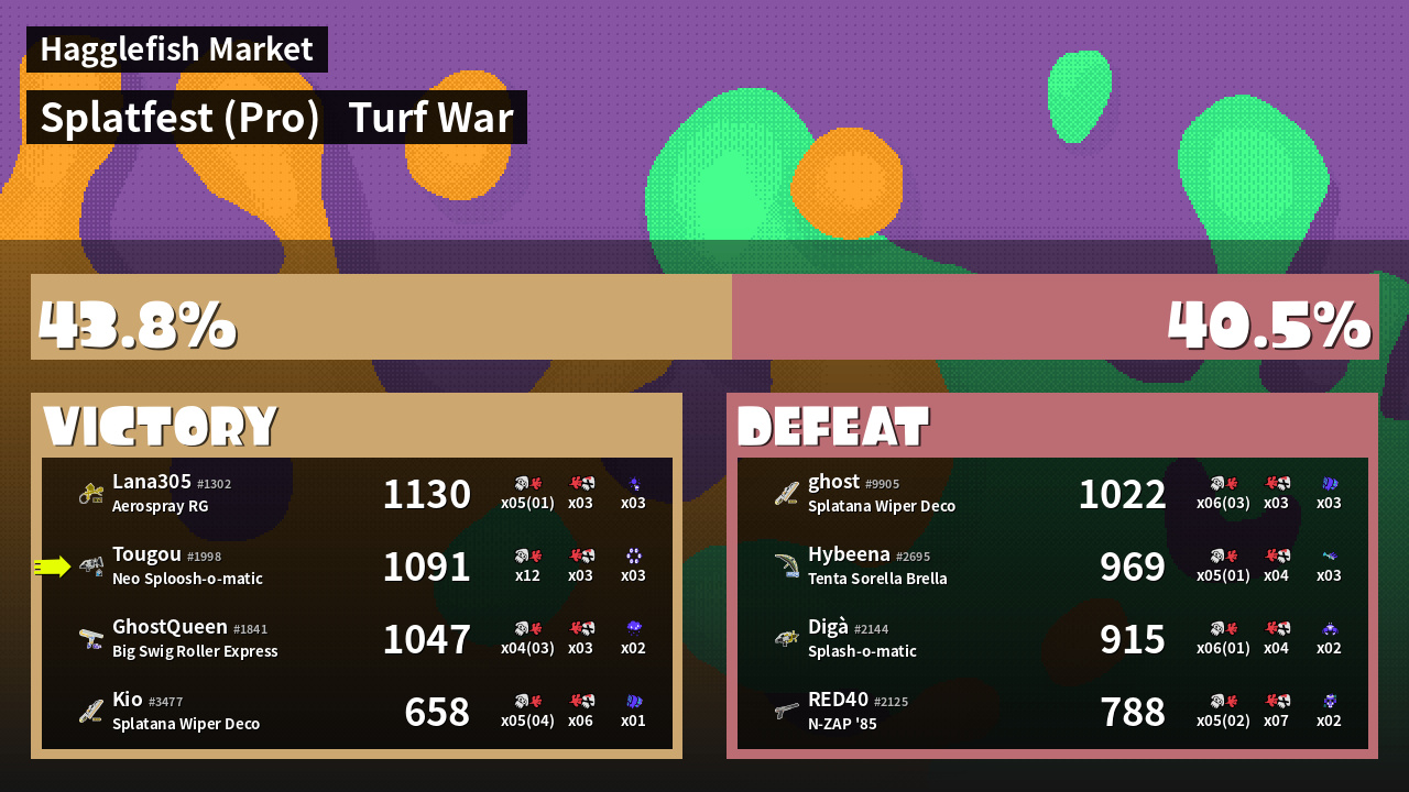 | Medals | #1 Overall Splatter #1 Popular Target #1 Enemy-Base Inker | ||