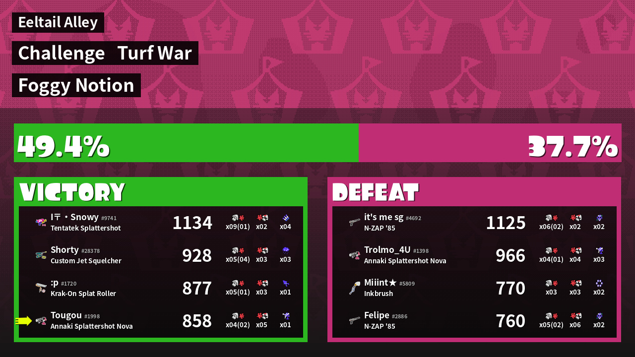 | Mode | Turf War - Challenge | ||