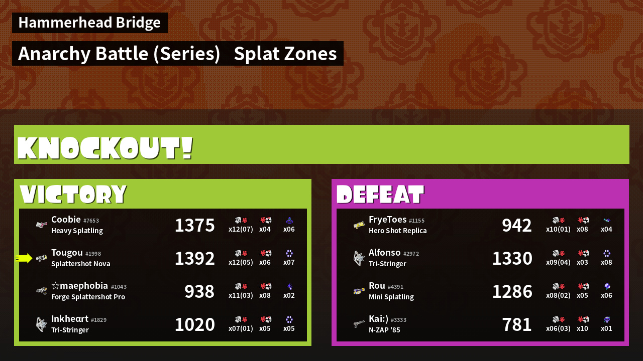 | Mode | Splat Zones - Anarchy Battle (Series) | ||