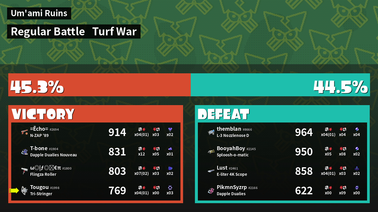 | Mode | Turf War - Regular Battle | ||