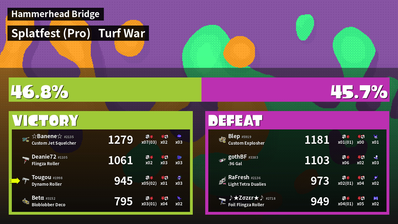 | Medals | #1 Damage Taker #1 Ink Consumer First Splat! | ||