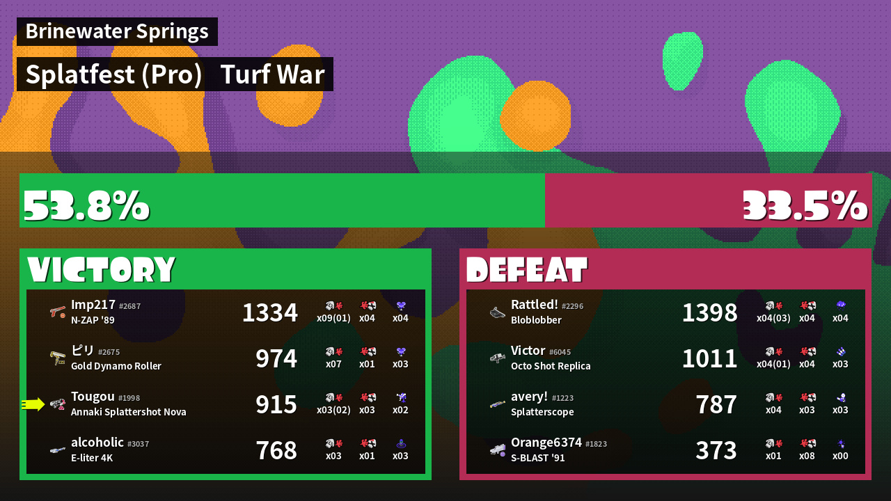 | Mode | Turf War - Splatfest (Pro) | ||