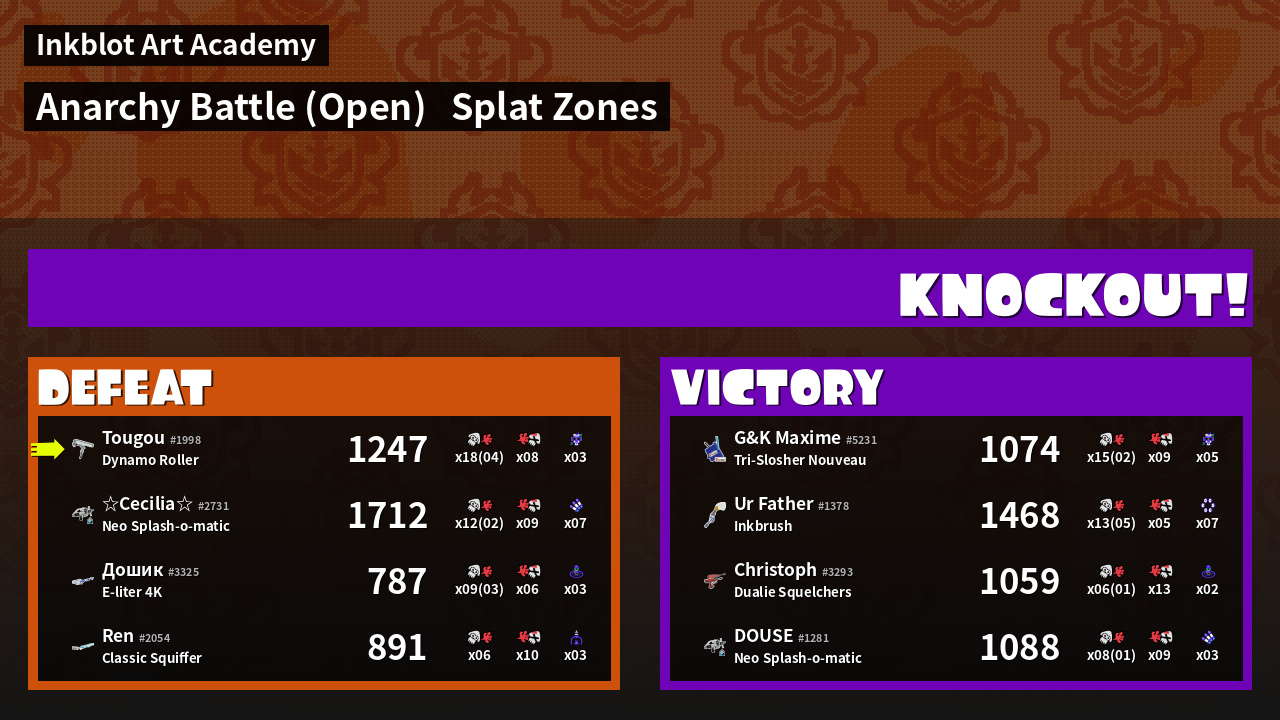 | Mode | Splat Zones - Anarchy Battle (Open) | ||