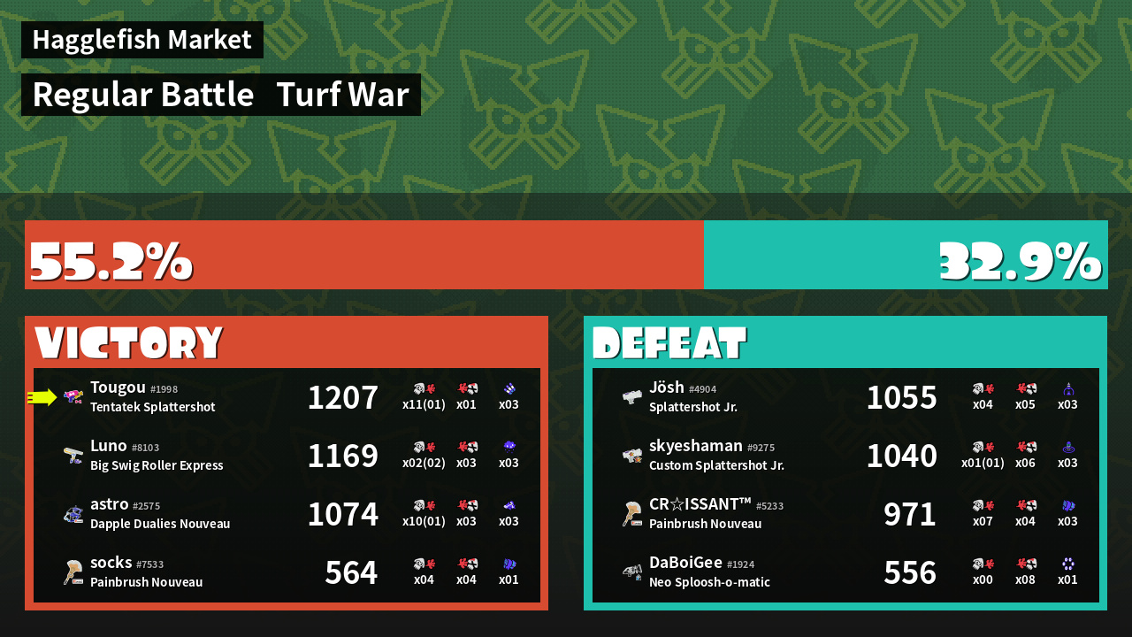 | Mode | Turf War - Regular Battle | ||