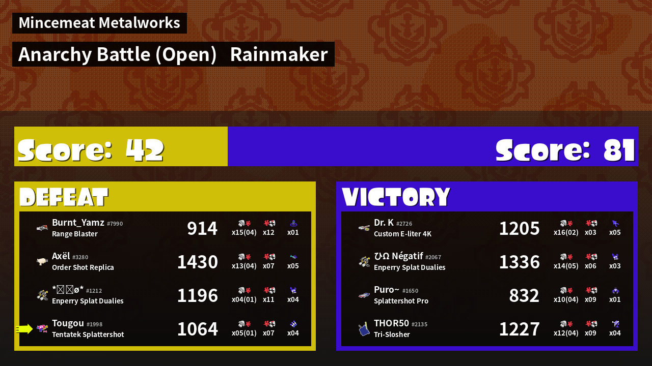 | Mode | Rainmaker - Anarchy Battle (Open) | ||