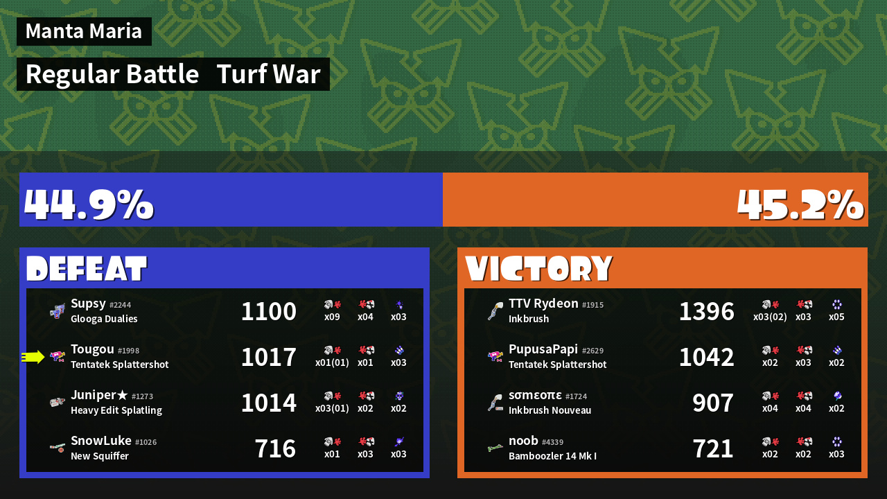 | Medals | #1 Enemy-Base Inker #1 Splat Assister #1 Ground Traveler | ||