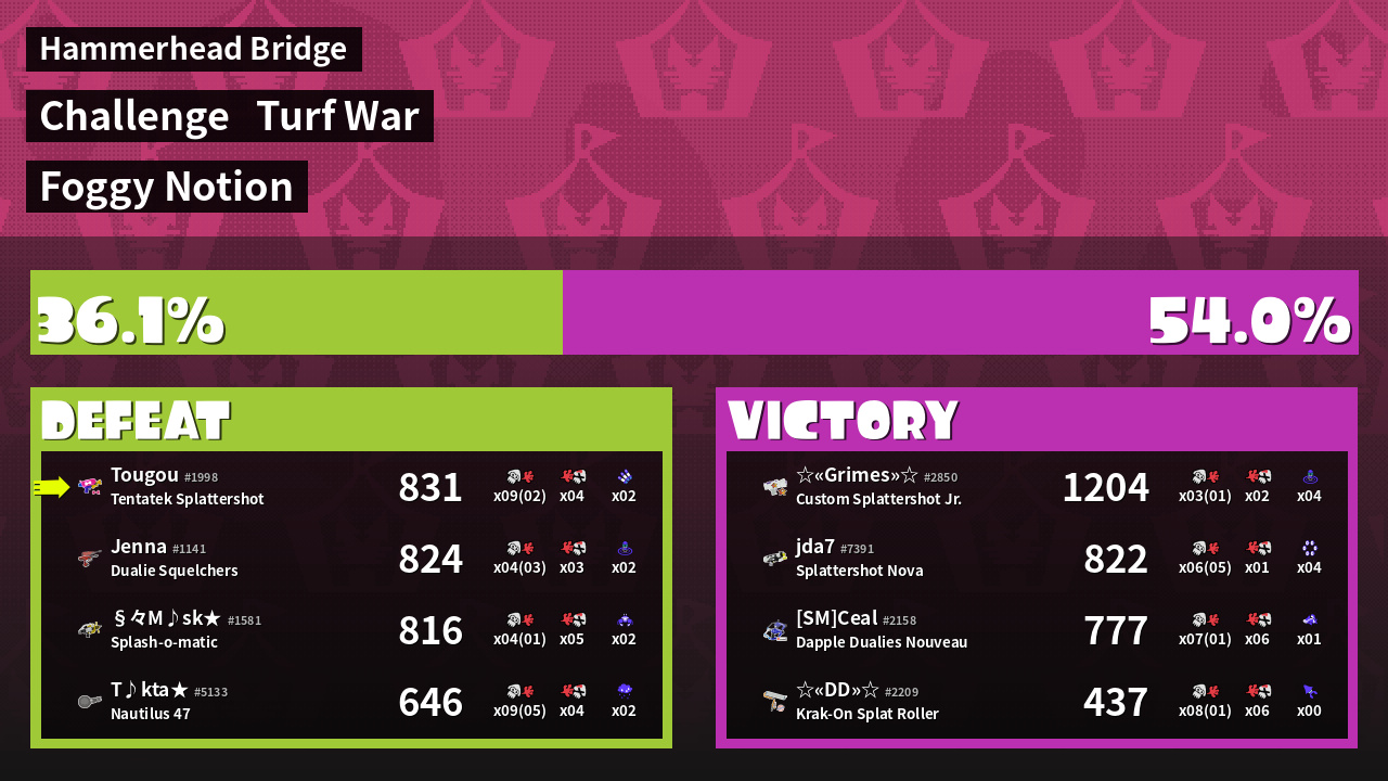 | Medals | #1 Overall Splatter #1 Turf Inker #1 Enemy-Base Inker | ||