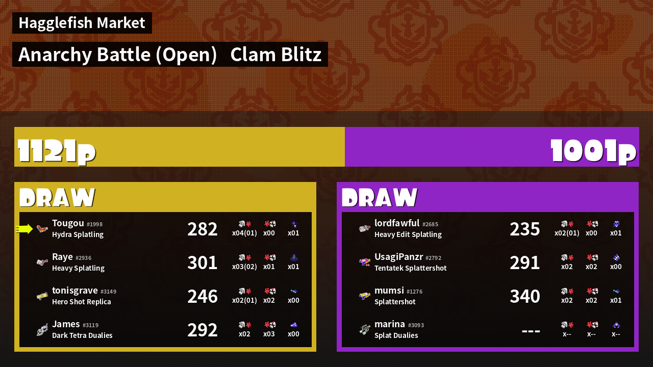 | Mode | Clam Blitz - Anarchy Battle (Open) | ||