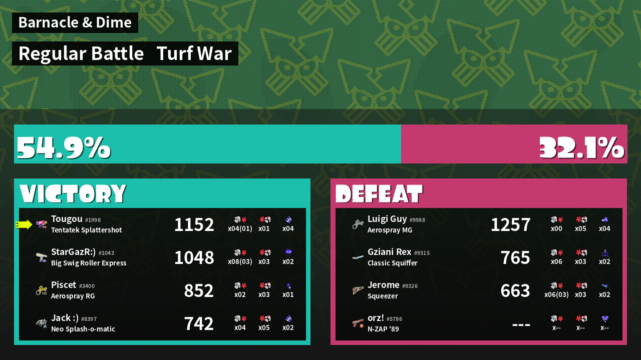 | Medals | #1 Turf Inker #1 Enemy-Base Inker #1 Super Jump Spot | ||