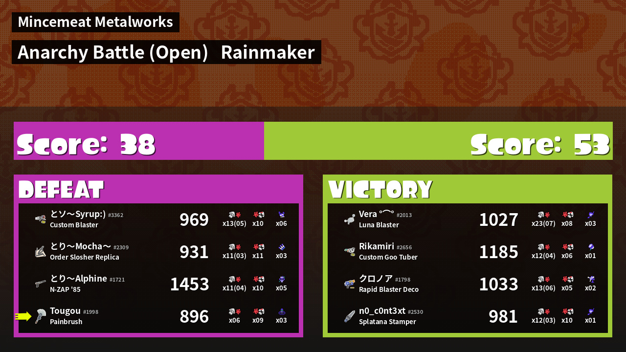 | Mode | Rainmaker - Anarchy Battle (Open) | ||
