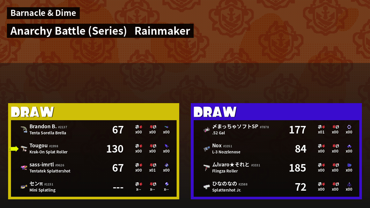 | Mode | Rainmaker - Anarchy Battle (Series) |