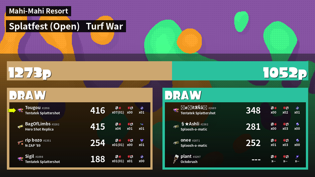 | Weapon | Tentatek Splattershot ( Splat Bomb / Triple Inkstrike) | ||