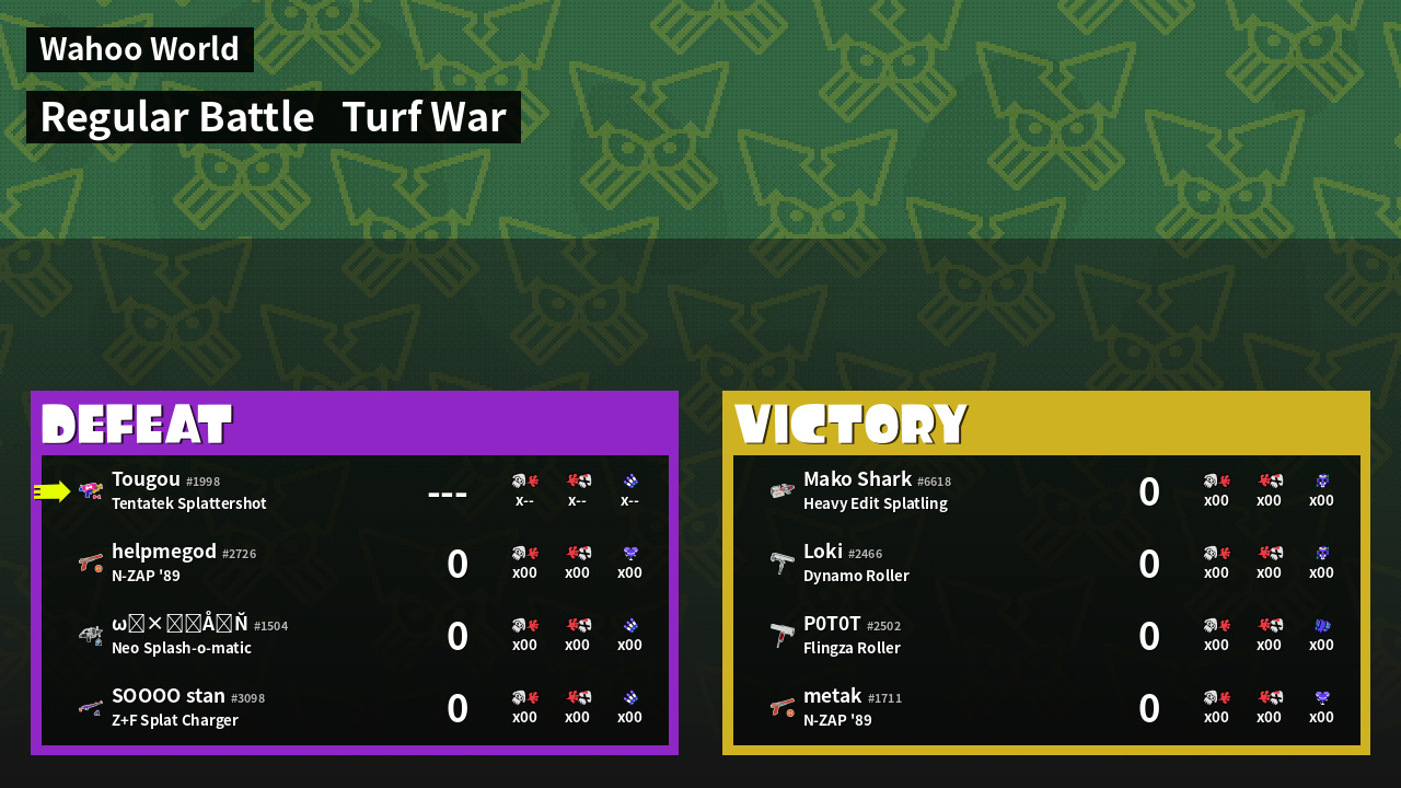 | Weapon | Tentatek Splattershot ( Splat Bomb / Triple Inkstrike) | ||