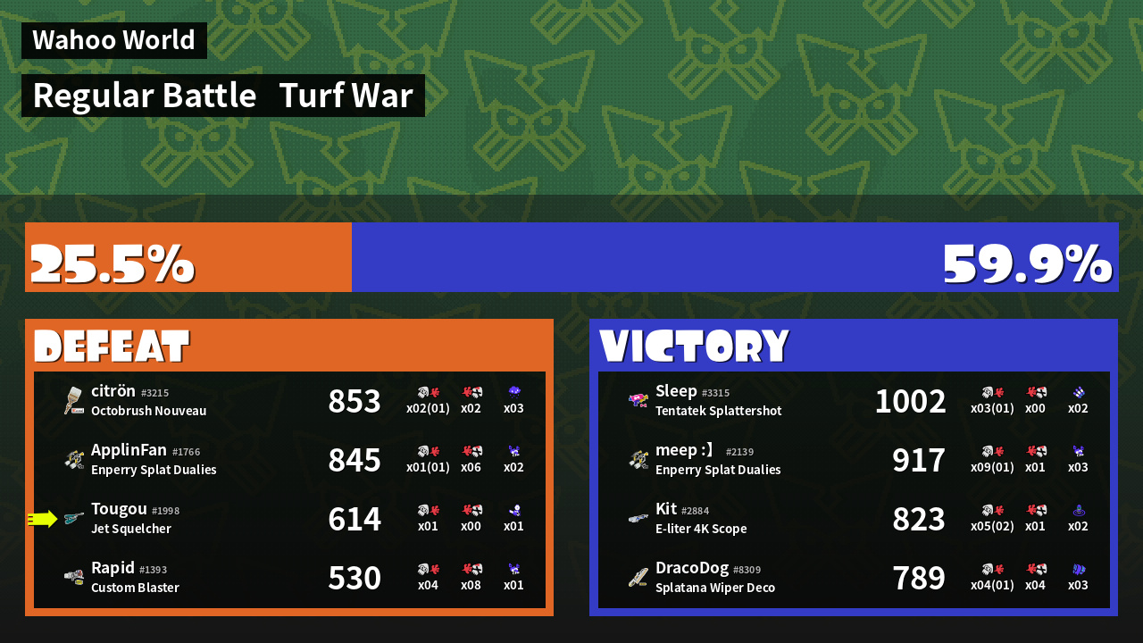 | Mode | Turf War - Regular Battle | ||