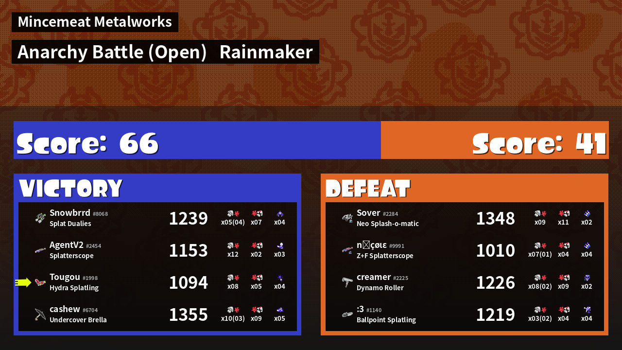 | Mode | Rainmaker - Anarchy Battle (Open) | ||
