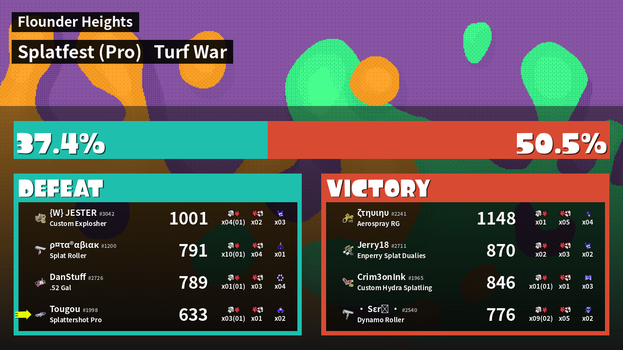 | Mode | Turf War - Splatfest (Pro) | ||