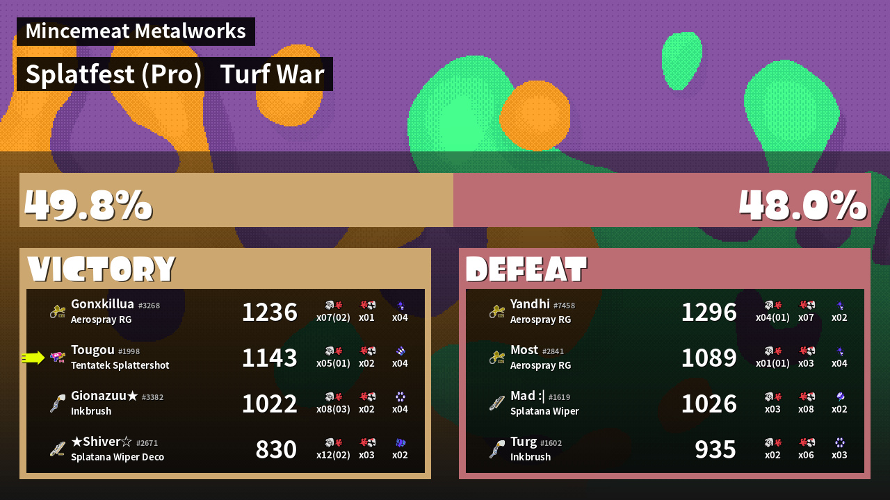| Mode | Turf War - Splatfest (Pro) | ||