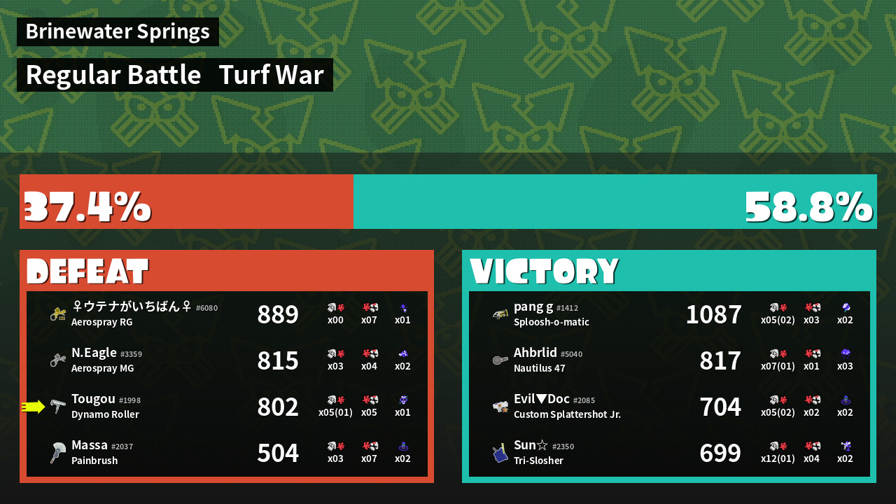 | Mode | Turf War - Regular Battle | ||