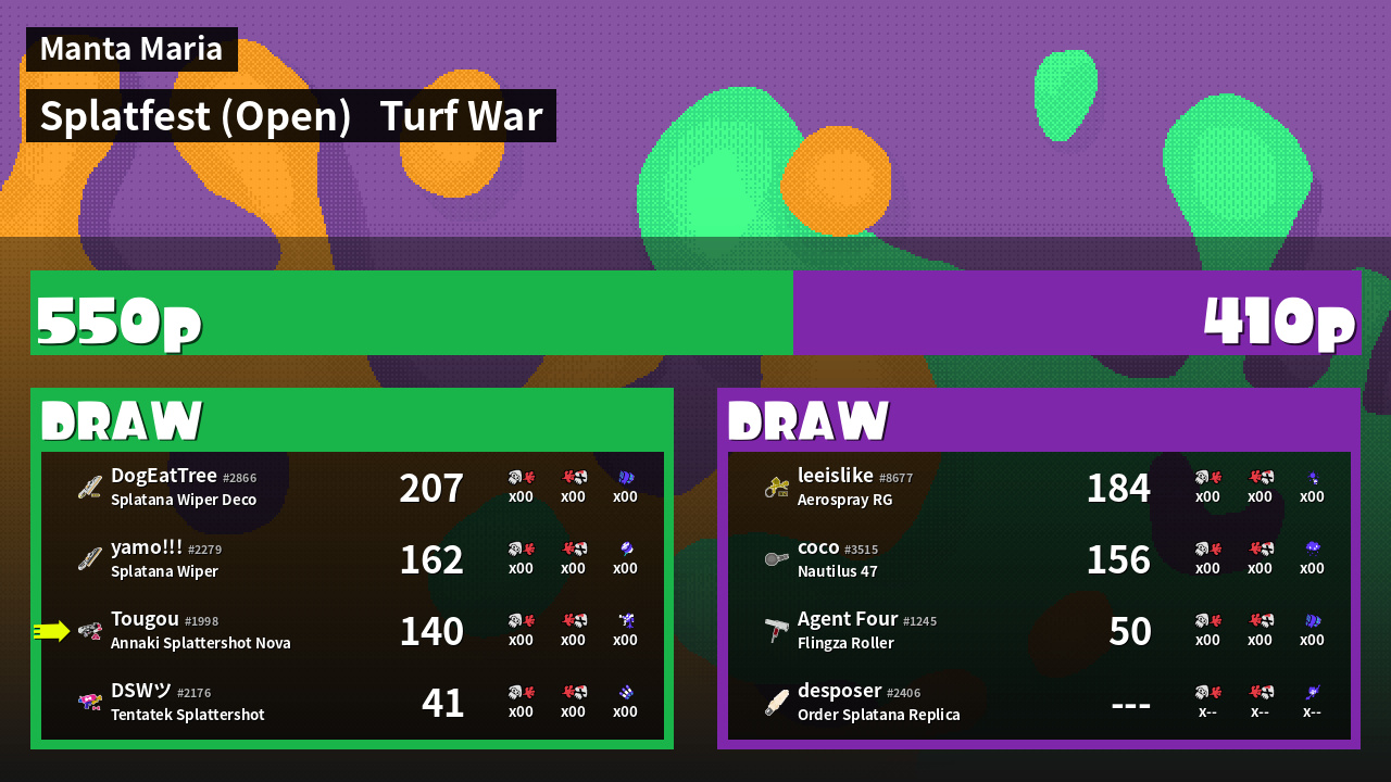 | Weapon | Annaki Splattershot Nova ( Ink Mine / Inkjet) | ||
