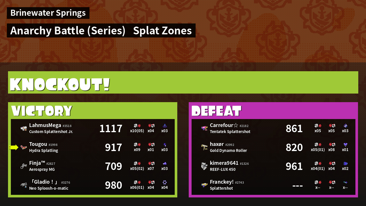 | Mode | Splat Zones - Anarchy Battle (Series) | ||