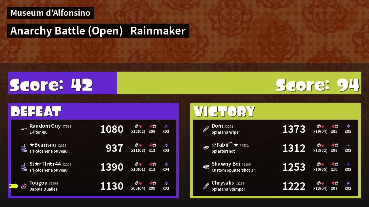 | Mode | Rainmaker - Anarchy Battle (Open) | ||