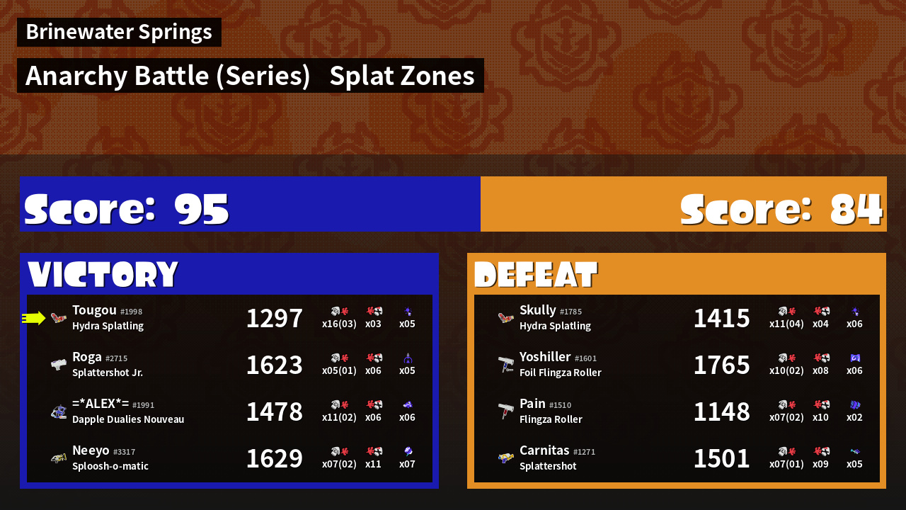 | Medals | #1 Overall Splatter #1 Splat Zone Guard #1 Enemy Splatter | ||