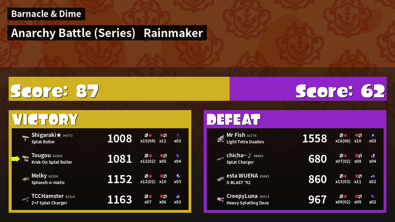 | Mode | Rainmaker - Anarchy Battle (Series) |