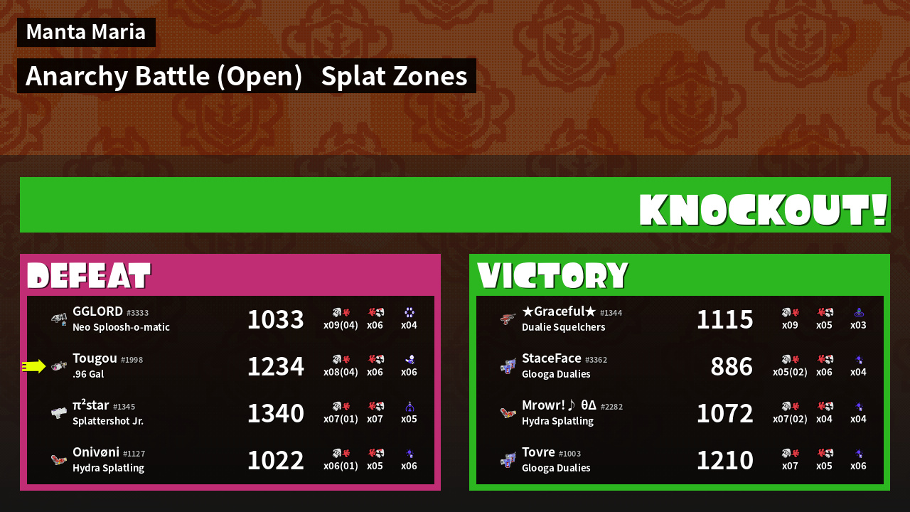 | Mode | Splat Zones - Anarchy Battle (Open) | ||