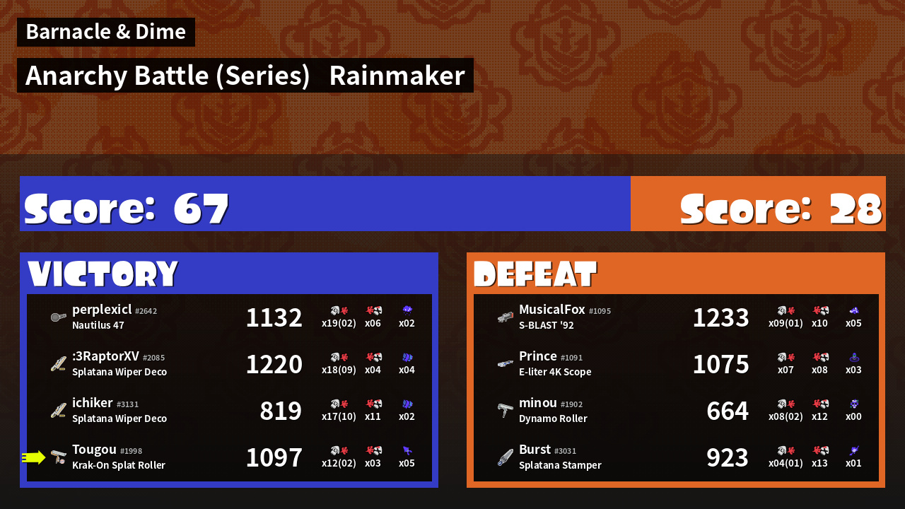 | Mode | Rainmaker - Anarchy Battle (Series) |