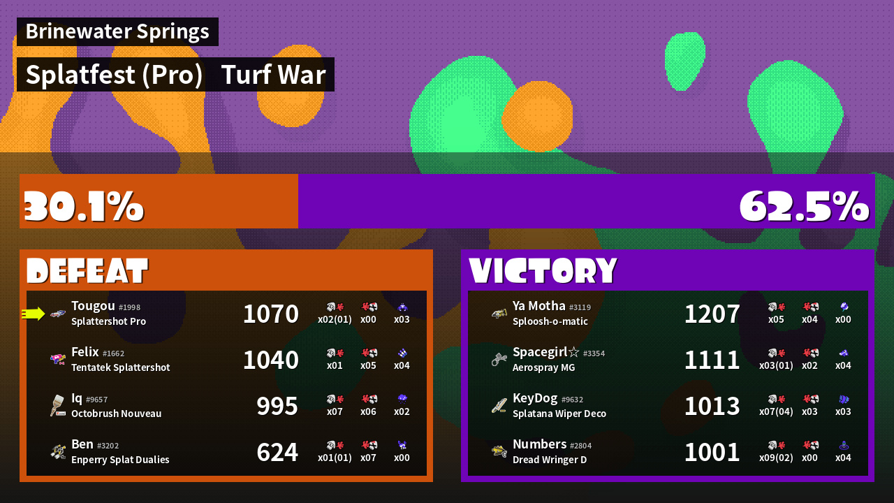 | Mode | Turf War - Splatfest (Pro) | ||