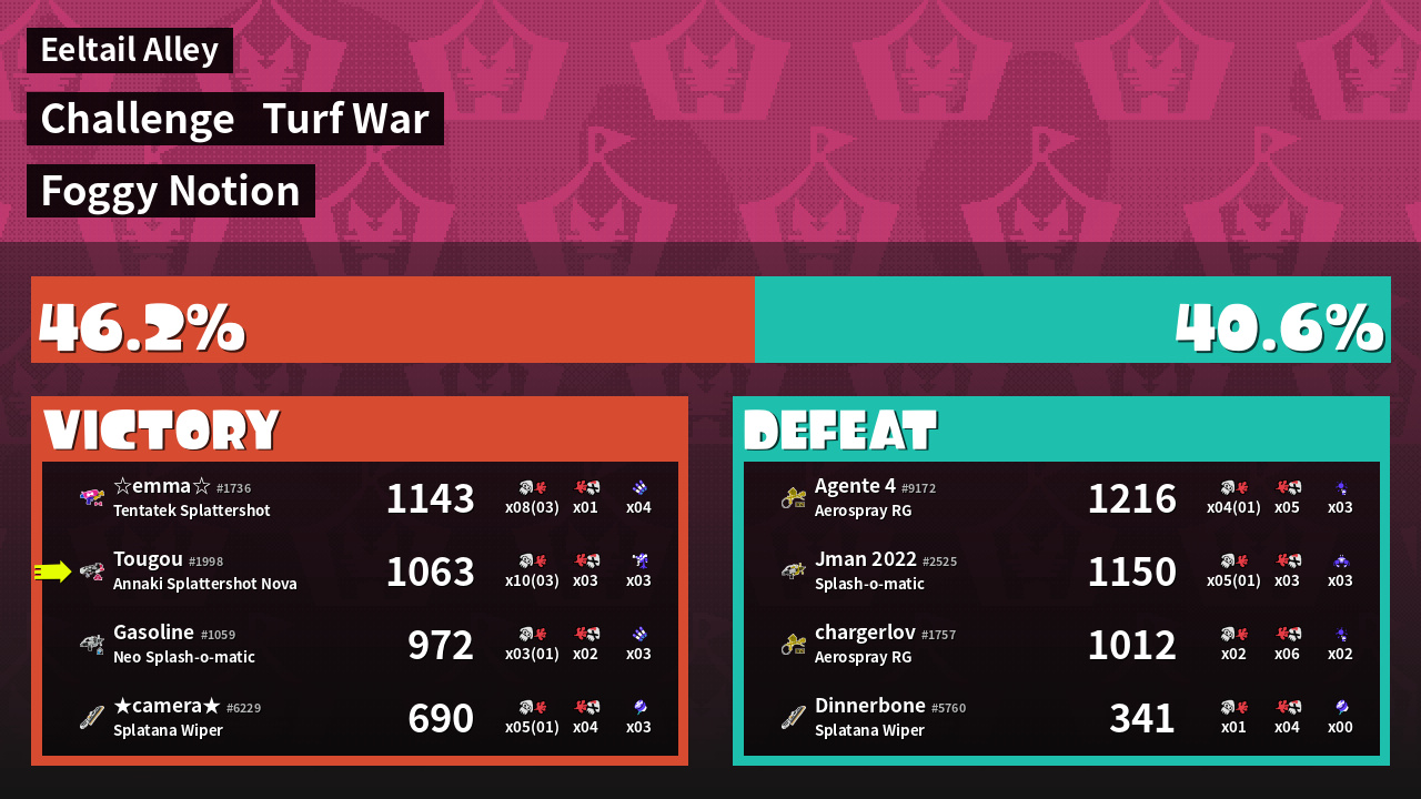 | Medals | #1 Overall Splatter #1 Enemy Splatter #1 Splat Assister | ||