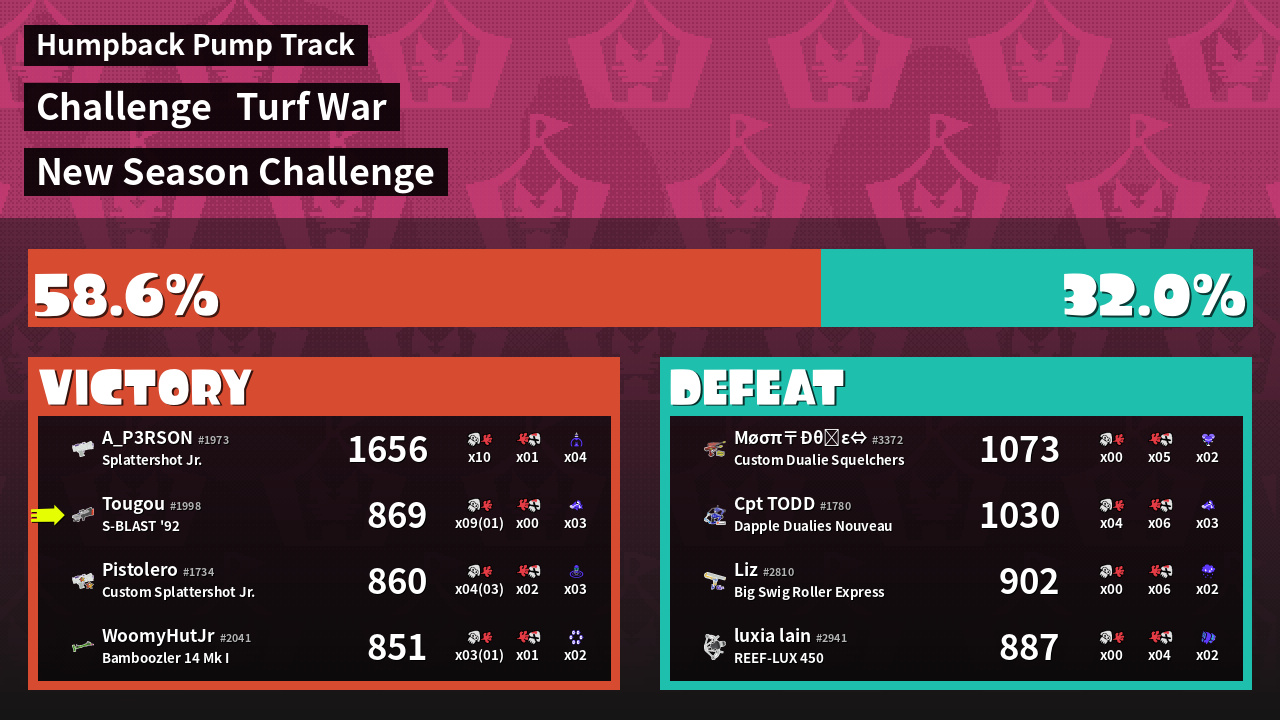 | Mode | Turf War - Challenge | ||