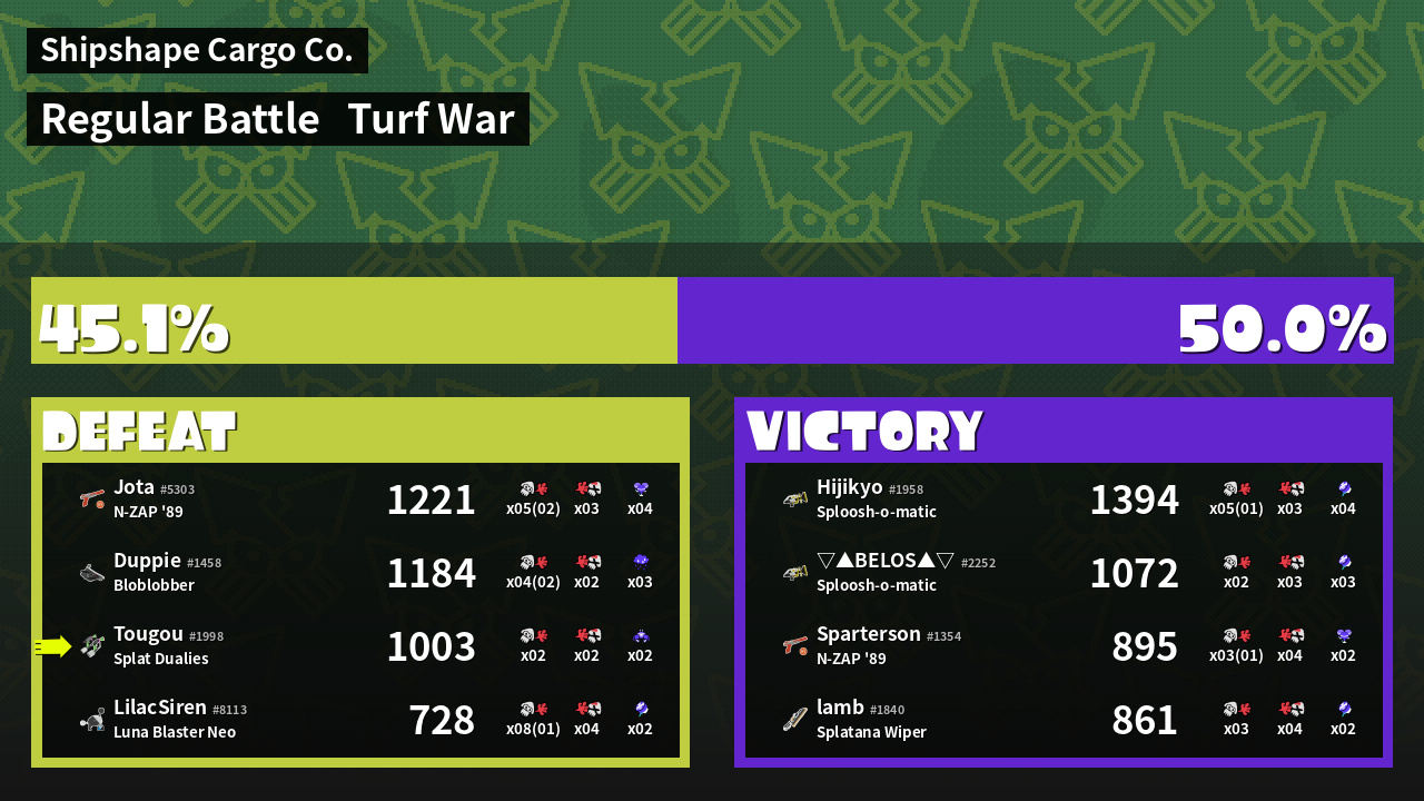 | Mode | Turf War - Regular Battle | ||