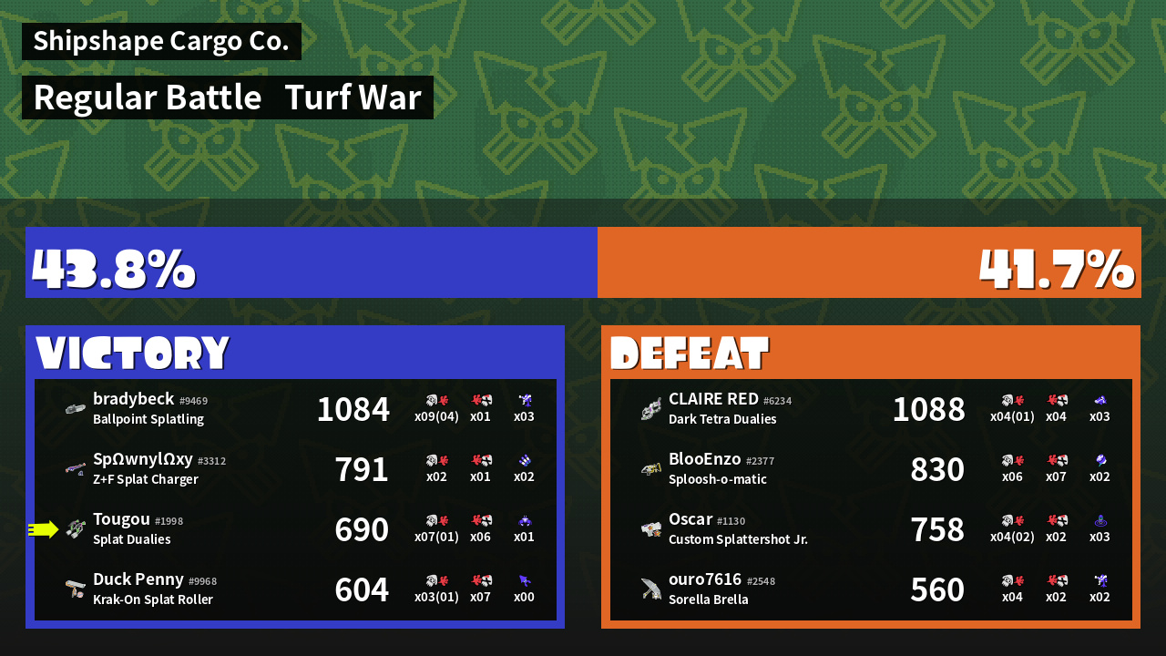 | Mode | Turf War - Regular Battle | ||