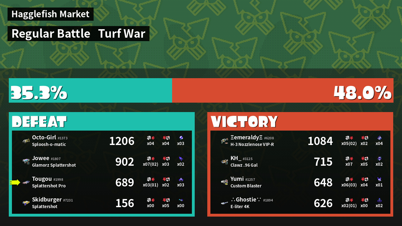 | Mode | Turf War - Regular Battle | ||