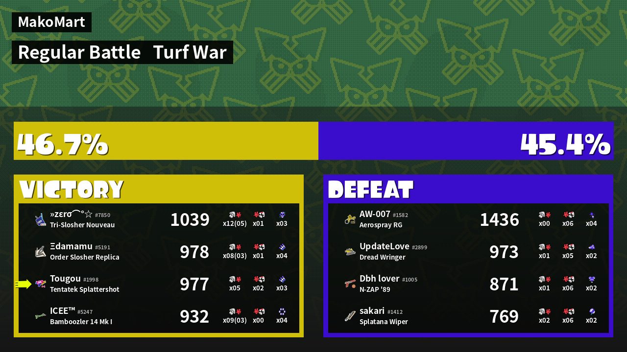 | Mode | Turf War - Regular Battle | ||