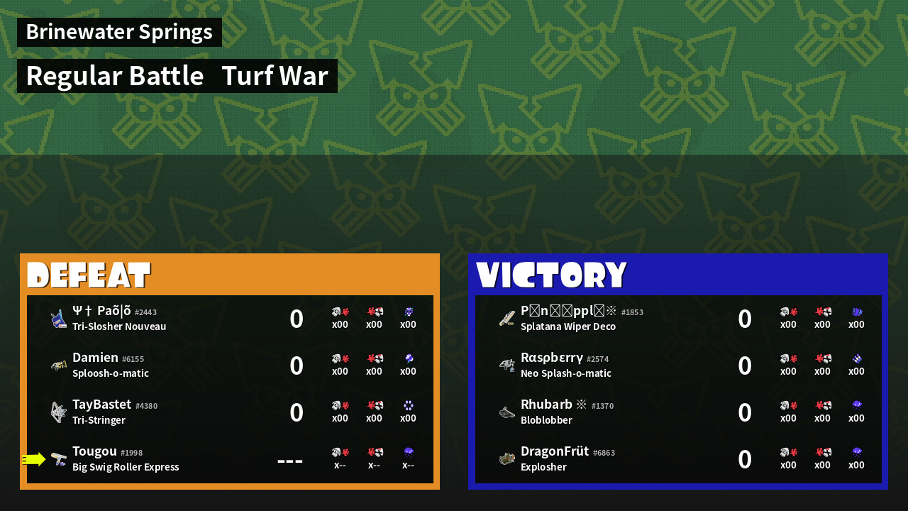 | Weapon | Big Swig Roller Express ( Angle Shooter / Ink Storm) | ||