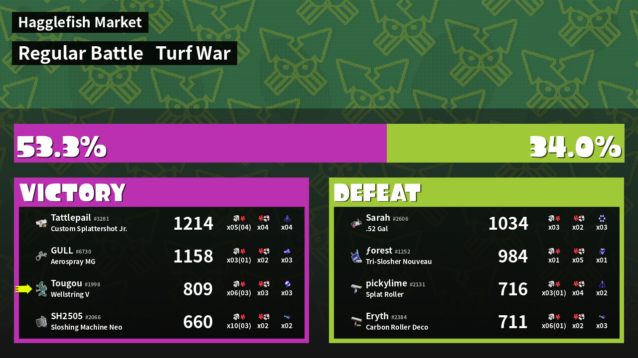 | Medals | #1 Damage Taker #1 Ultra Stamp User #2 Overall Splatter | ||