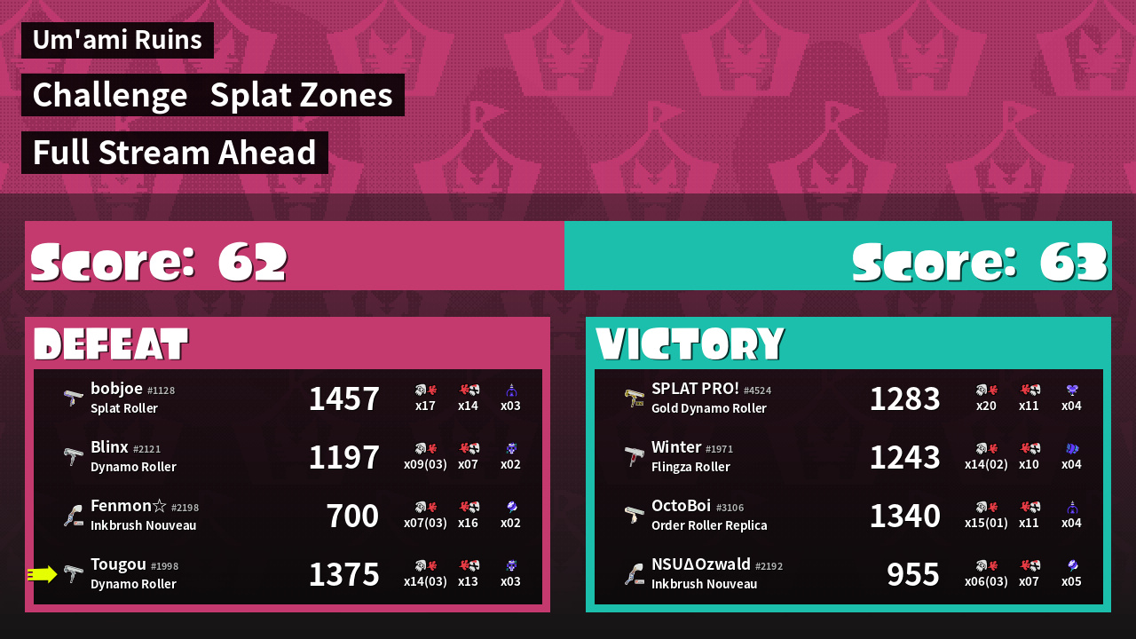 | Weapon | Dynamo Roller ( Sprinkler / Tacticooler) | ||