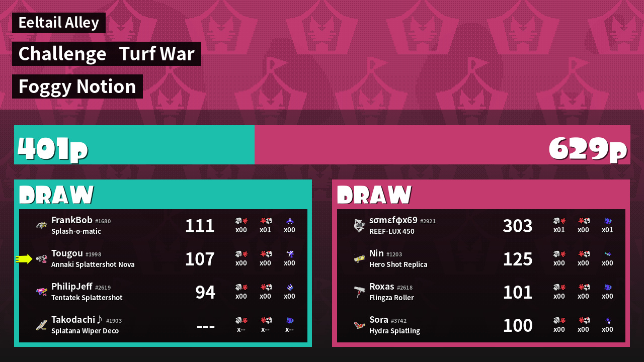| Mode | Turf War - Challenge | ||