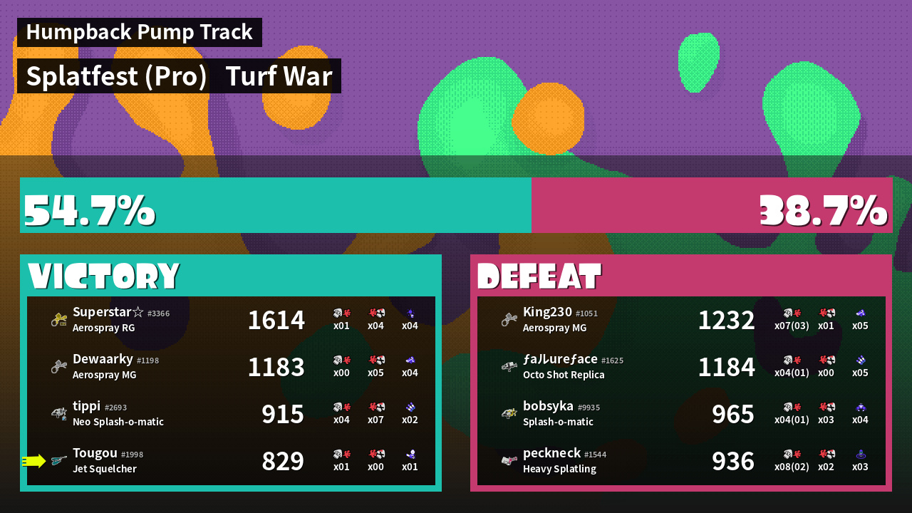| Mode | Turf War - Splatfest (Pro) | ||