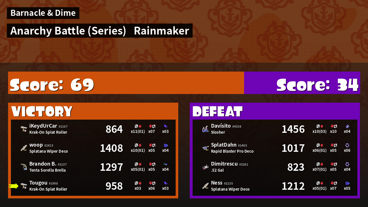 | Mode | Rainmaker - Anarchy Battle (Series) |