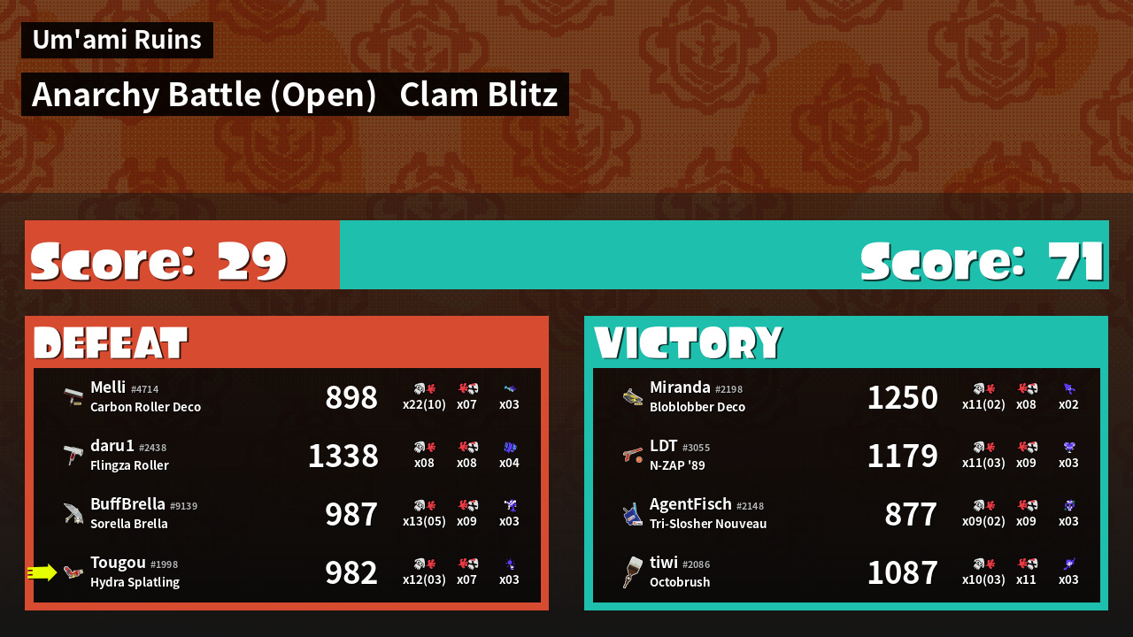 | Mode | Clam Blitz - Anarchy Battle (Open) | ||