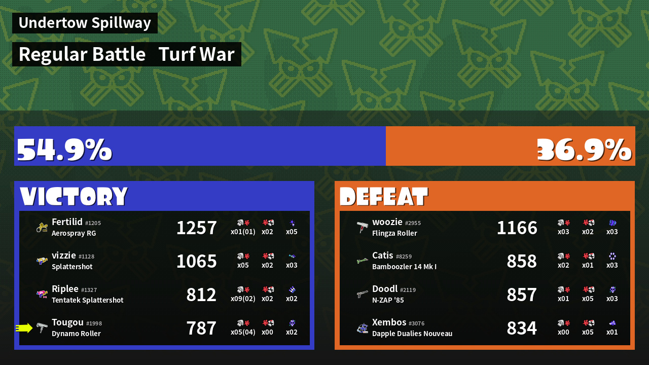 | Medals | #1 Splat Assister #1 Tacticooler User #2 Overall Splatter | ||