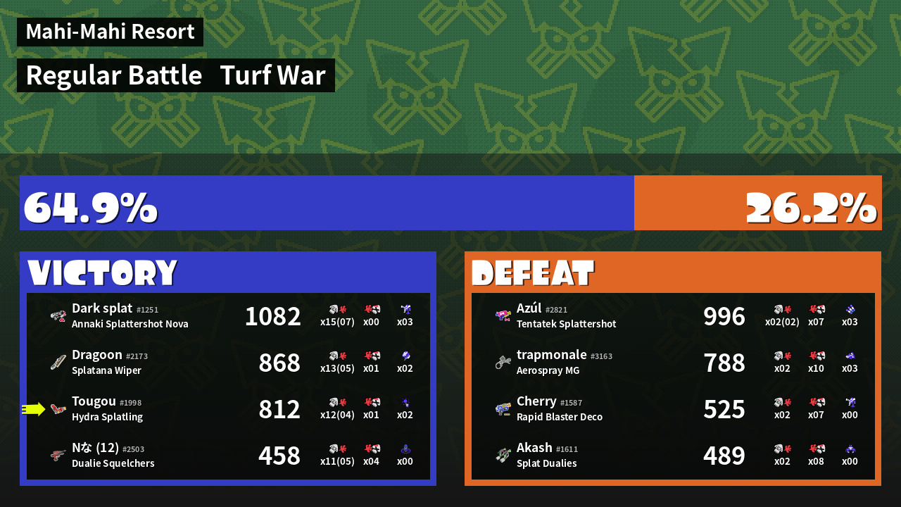 | Mode | Turf War - Regular Battle | ||