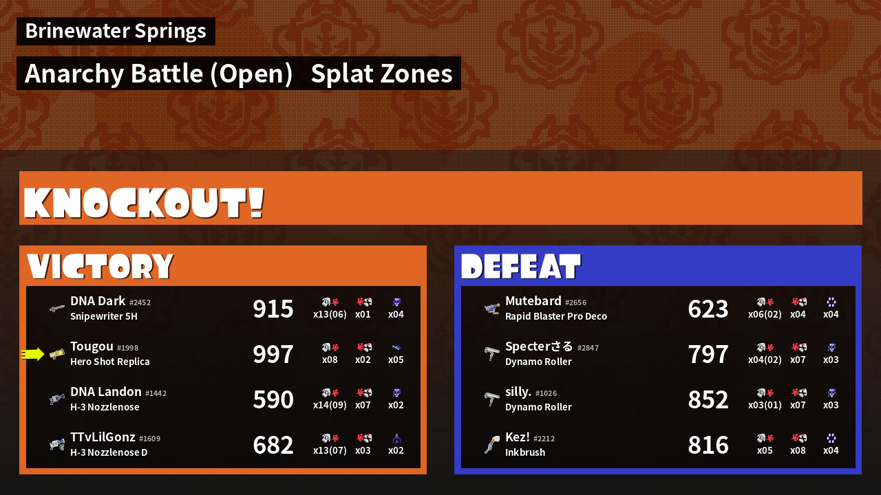 | Mode | Splat Zones - Anarchy Battle (Open) | ||