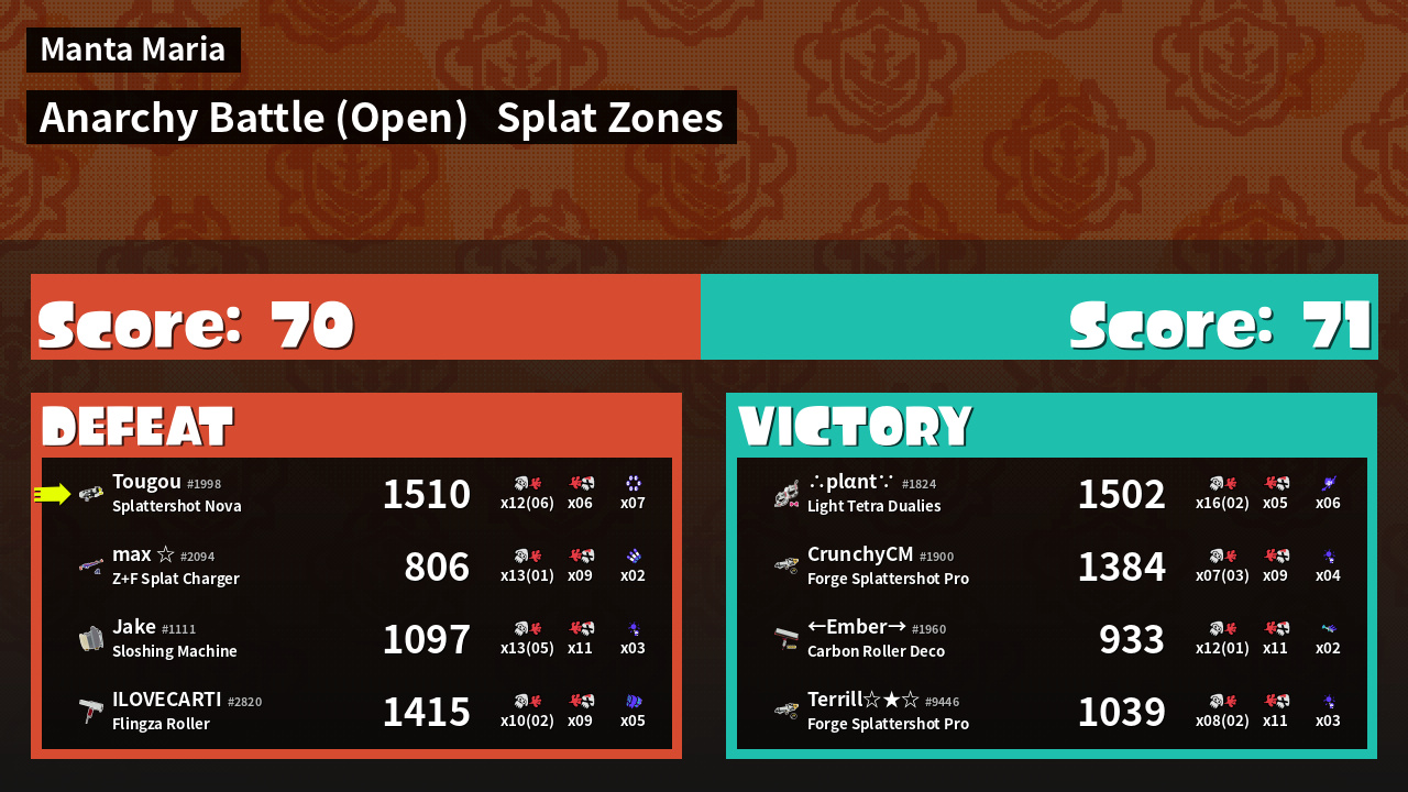 | Mode | Splat Zones - Anarchy Battle (Open) | ||