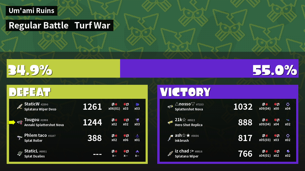| Medals | #1 Home-Base Inker #1 Super Jump Spot #2 Overall Splatter | ||