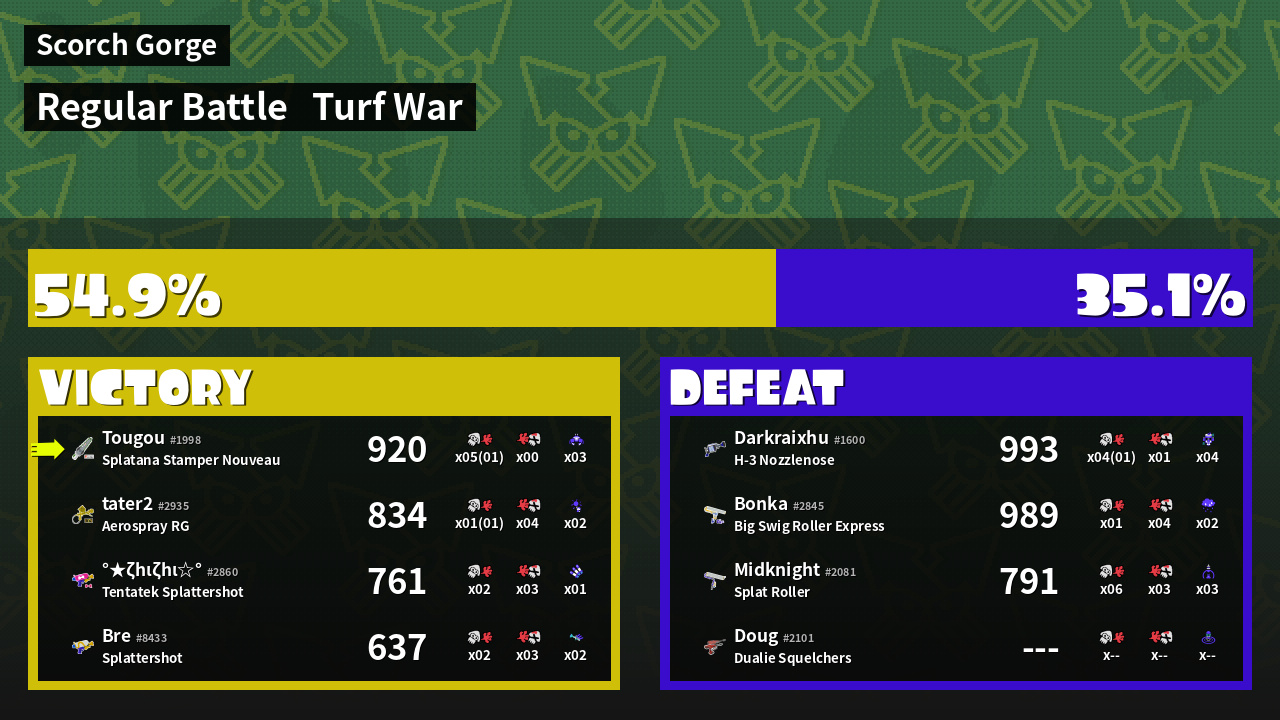 | Mode | Turf War - Regular Battle | ||